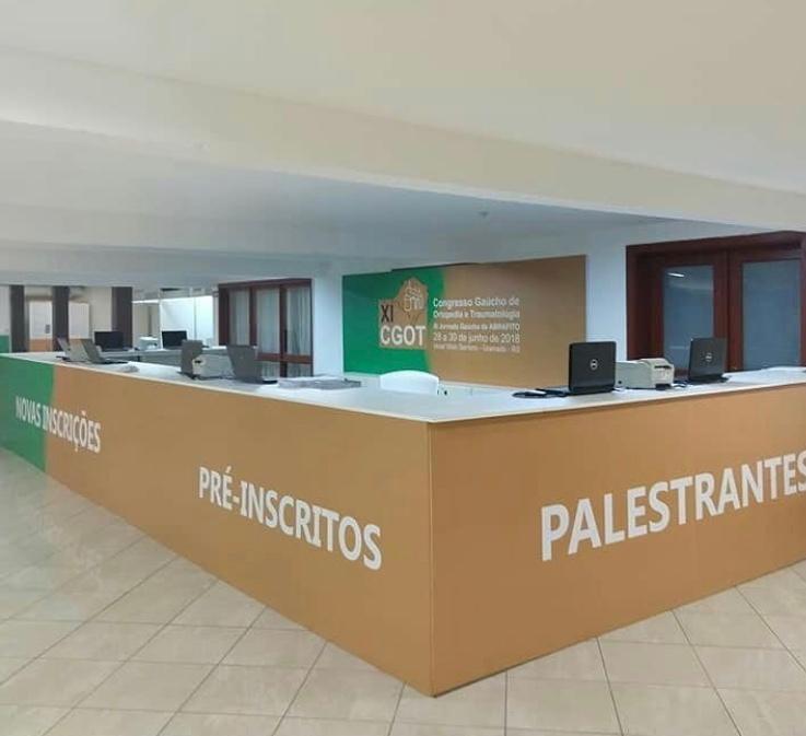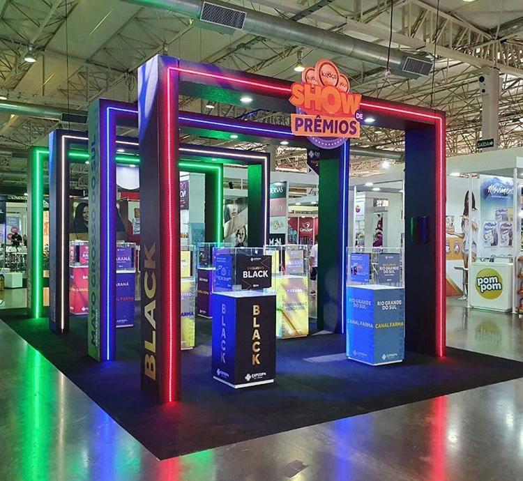 Projeto desenvolvido utilizando sistema modular em perfis de alumínio. Este serviço possibilita a personalização do seu stand através de comunicação visual e elementos como vitrines, programação visual, iluminação diferenciada, totens e torres para citar a alguns exemplos, de forma funcional e econômica.